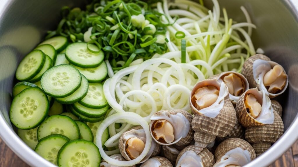 야채에서 물이 나오면 골뱅이무침이 아니라 ‘골뱅이 국’이 되어버려요.
