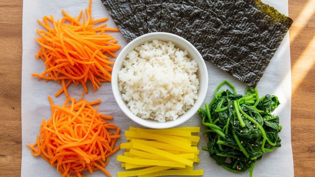 보통 당근, 단무지, 시금치(또는 부추)가 전부죠.
