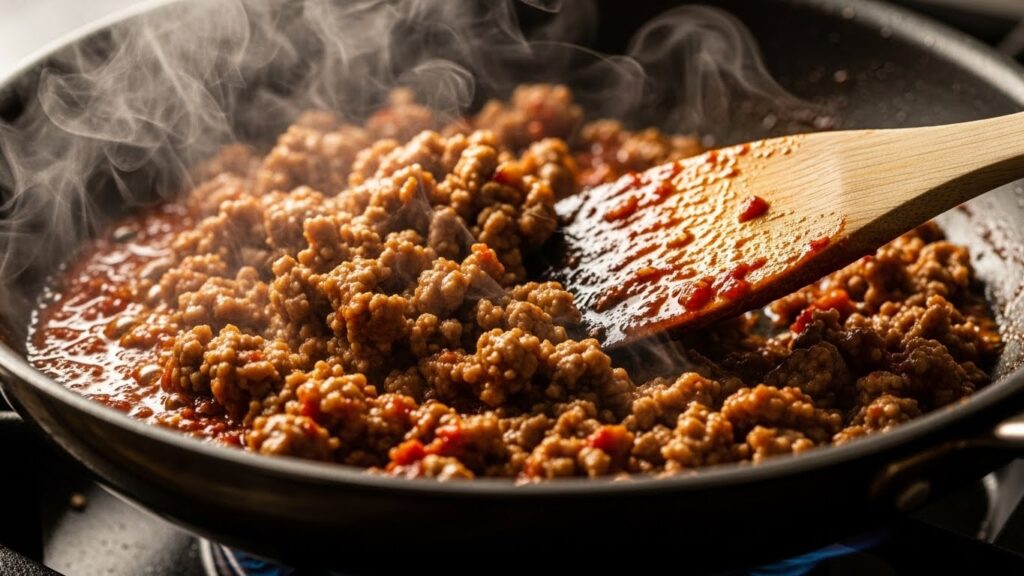 이때, 고기의 겉면이 갈색으로 변할 때까지 충분히 볶아줘야 잡내가 사라지고 고소함이 살아납니다.