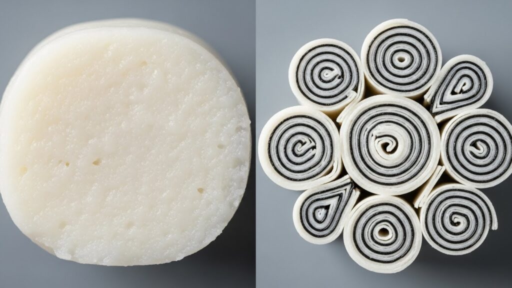 일반 떡은 속이 꽉 차 있어서 씹을 때 밀도가 높지만, 라이스 페이퍼를 돌돌 말아 만든 떡은 겹겹이 층이 살아있습니다.