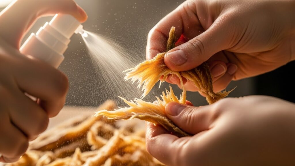 오늘은 ‘불 없는 레시피’라 그냥 무쳤지만, 만약 여유가 있다면 마른 팬에 황태를 살짝 볶아서 수분을 날린 뒤 무쳐보세요.
