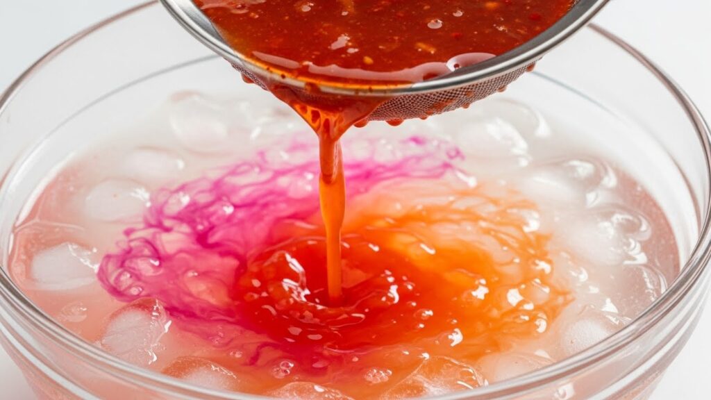 - 투명해지면 건져내서 얼음물에 빡빡 씻는다.