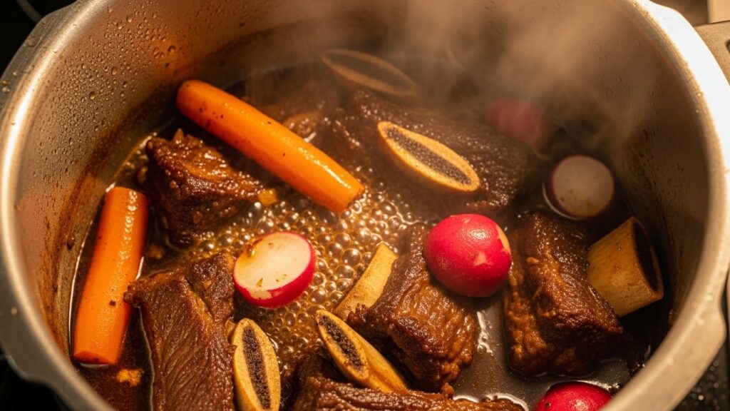 3. 질긴 고기를 녹이는 압력밥솥의 마법 시간! (가장 중요)