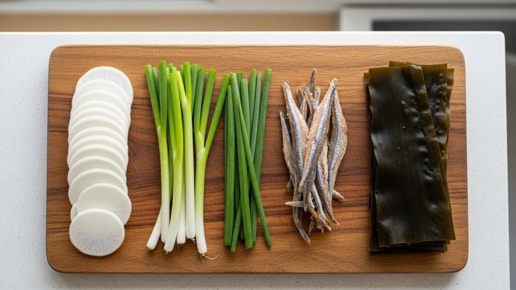 - 멸치 다시마 육수 팩: 1개 (또는 국물용 멸치 10마리 + 다시마 2장)