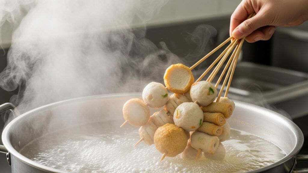 어묵을 넣고 센 불에서 바글바글 끓이다가, 어묵이 통통하게 부풀어 오르면 바로 불을 꺼야 해요. 너무 오래 끓이면 어묵의 탄력이 사라지고 흐물흐물해져서 식감이 엉망이 됩니다.