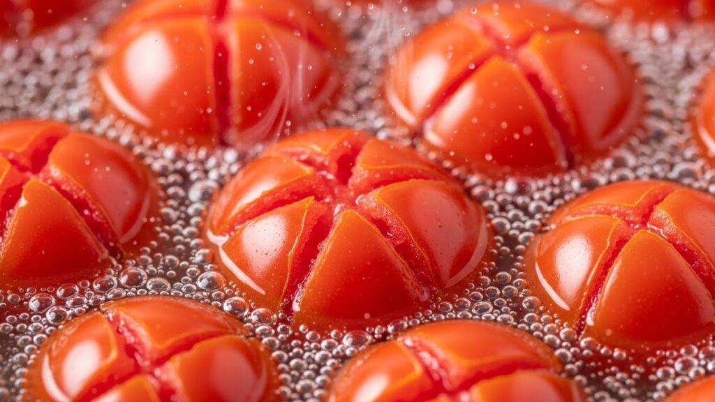 1. 토마토는 십자 칼집 후 10초 데치기 & 얼음물!