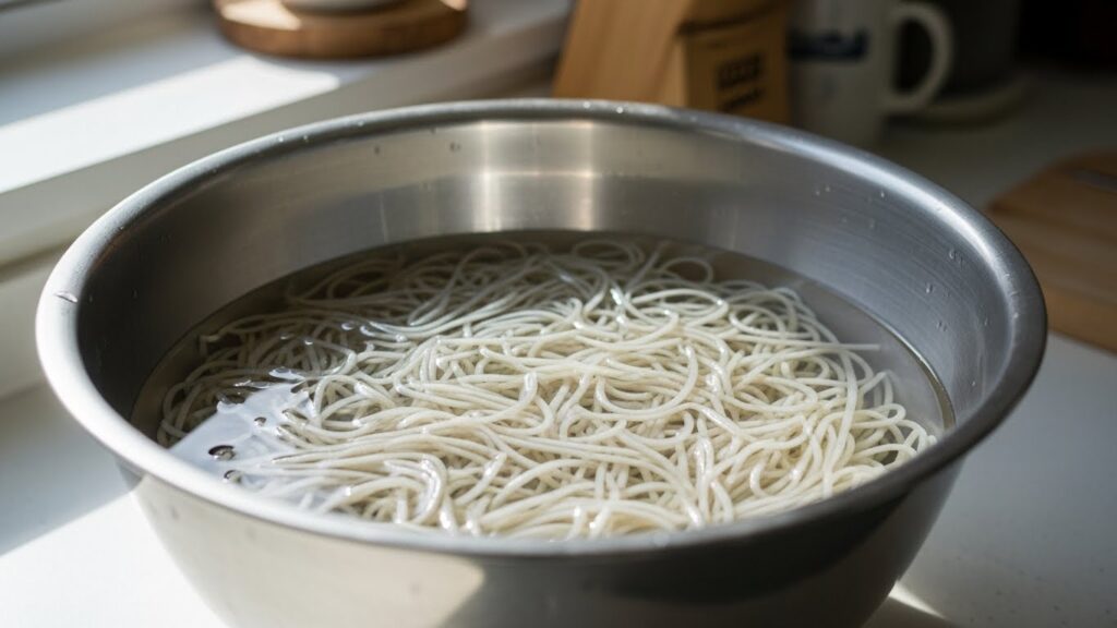 따뜻한 물(약 50~60도)에 당면을 30분에서 1시간 정도 담가두세요.