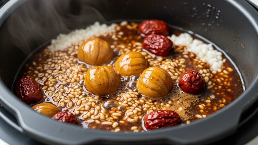 3. 설탕 대신 대추고와 간장 비율로 고급스러운 색감을 냅니다.