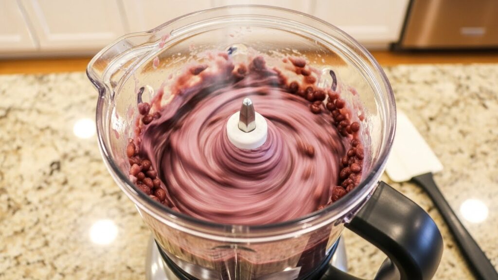 잘 익은 팥을 식힌 뒤 믹서기에 넣고 곱게 갈아주세요.