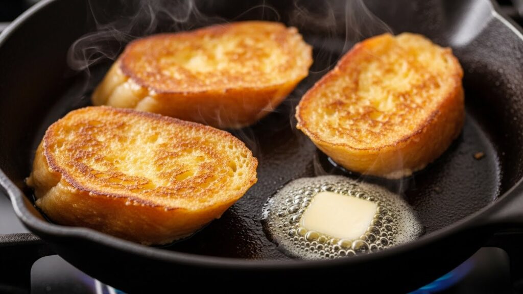 2. **통식빵 (두껍게 썬 것):** 최소 3cm 두께는 되어야 겉바속촉이 가능합니다. 얇은 샌드위치용은 비추천!
